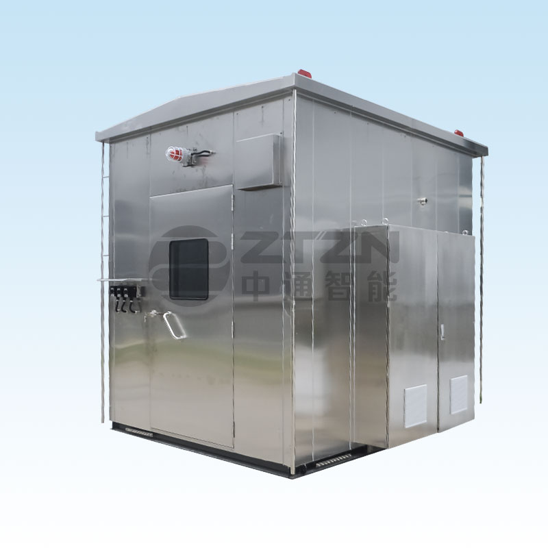 e、 小屋安全门带用防爆玻璃视窗、闭门器及逃生锁,可快速开启,操作灵活。根据用户要求也可增设第二道门(缓冲间)。